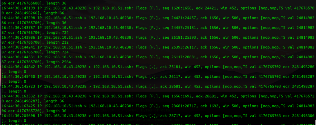 Jak to wygląda z poziomu podglądania ruchu? Syntetyczny tcpdump nie da nam ładnego wyniku. Widać, że jest jakiś ruch, że się coś ruszało, ale w obecnej formie niewiele nam to mówi.