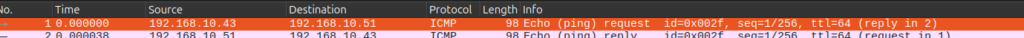 Prawda, że to nie jest czytelne? Wykonajmy jednak ponownie ten test, tym razem zapisując zrzut ruchu do pliku. Otworzymy taki zrzut w kombajnie Wireshark, co pozwoli nam na czytelniejszą analizę. Powtórzmy więc test, ale zainicjujemy zrzut ruchu modyfikując polecenie: