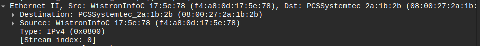 Obrazek powyżej jest zajumany z Wikipedii, ale świetnie oddaje to, co chcę przekazać. Pierwsza linijka zwiera niezbyt interesujące informacje o warstwie pierwszej. Ale druga linijka jest już ciekawa. Tutaj są informacje o adresach MAC źródła i celu:
