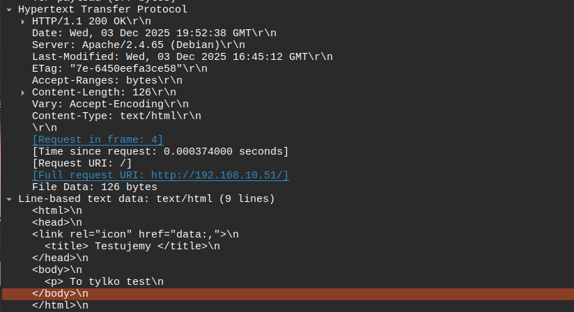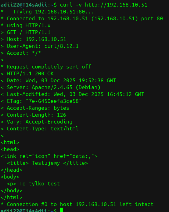 Na serwerze 192.168.10.51 został uruchomiony serwer WWW Apache2, który serwuje prostą stronę WWW: