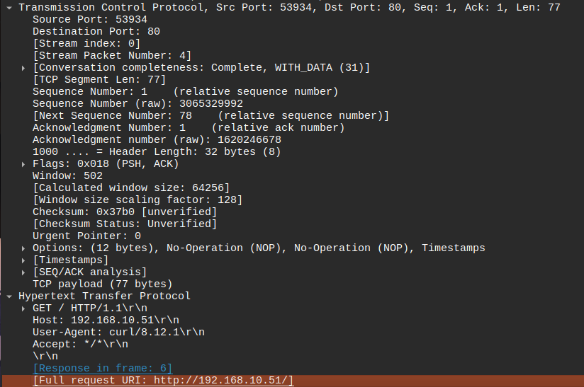 Przeczytaj od góry zawartość powyższego screena. Tutaj widać o co pytamy (ostatnia sekcja Full request URI ), jaki User Agent został od nas wypchnięty i wiele, wiele innych ciekawostek. Wykazaliśmy, że widać zapytanie o witrynę http://192.168.10.51/.